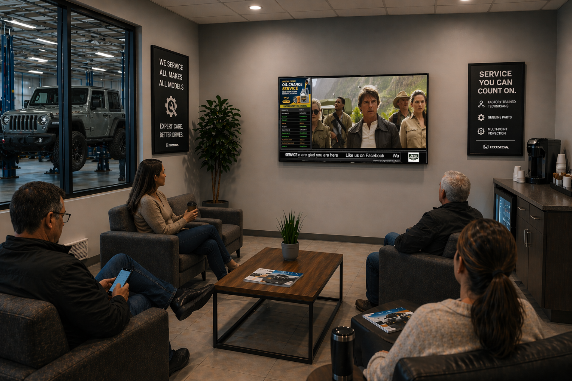 The Digital Dealership System allows us to strategically promote our dealership offers and events to our lounge customers. By replacing competitive commercials on Livew channels, customers can still watch what they want, but our services show professionally and impressively.