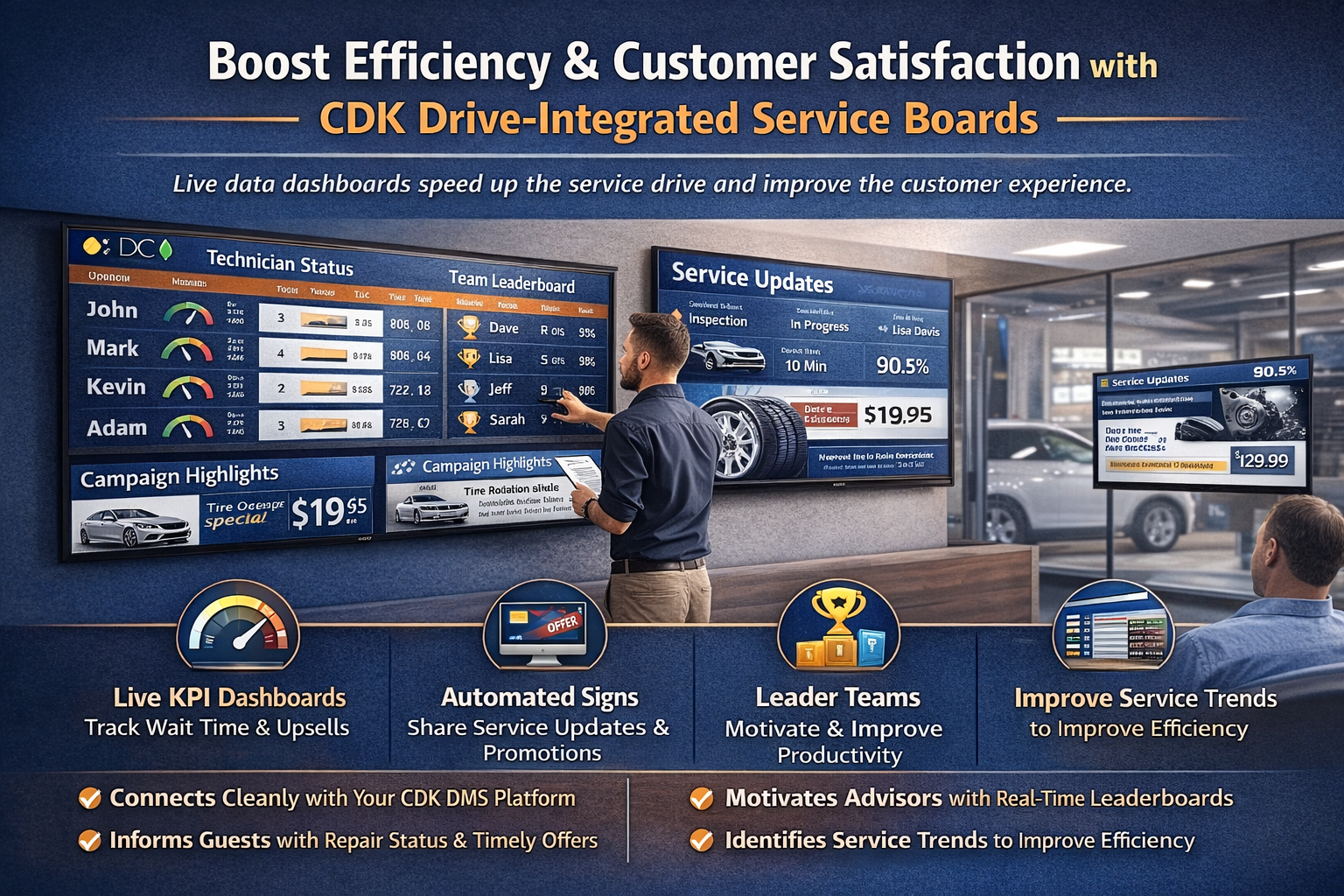 You’ll lift close rates quickly by streaming live, DMS-connected leaderboards that display real-time KPIs—units sold, gross profit, CSI, appointment conversions, and more—directly to TVs and mobile devices.